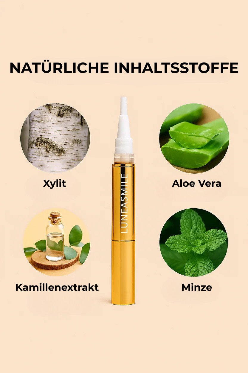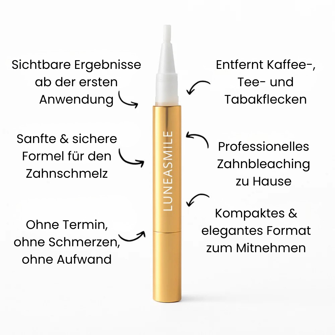 „Mit der Zeit verliert der Zahnschmelz an Glanz. Der Sofort-Whitening-Stift LUNEASMILE wirkt sanft, um die natürliche Zahnweiße wiederzubeleben. Eine effektive, schnelle und schmerzfreie Lösung, ideal, um das Vertrauen in Ihr Lächeln zurückzugewinnen.“
